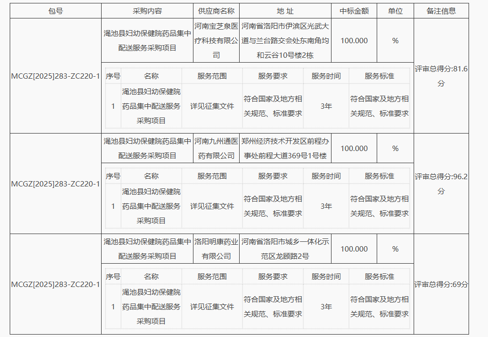 2、项目名称:渑池县妇幼保健院药品集中配送服务采购项目